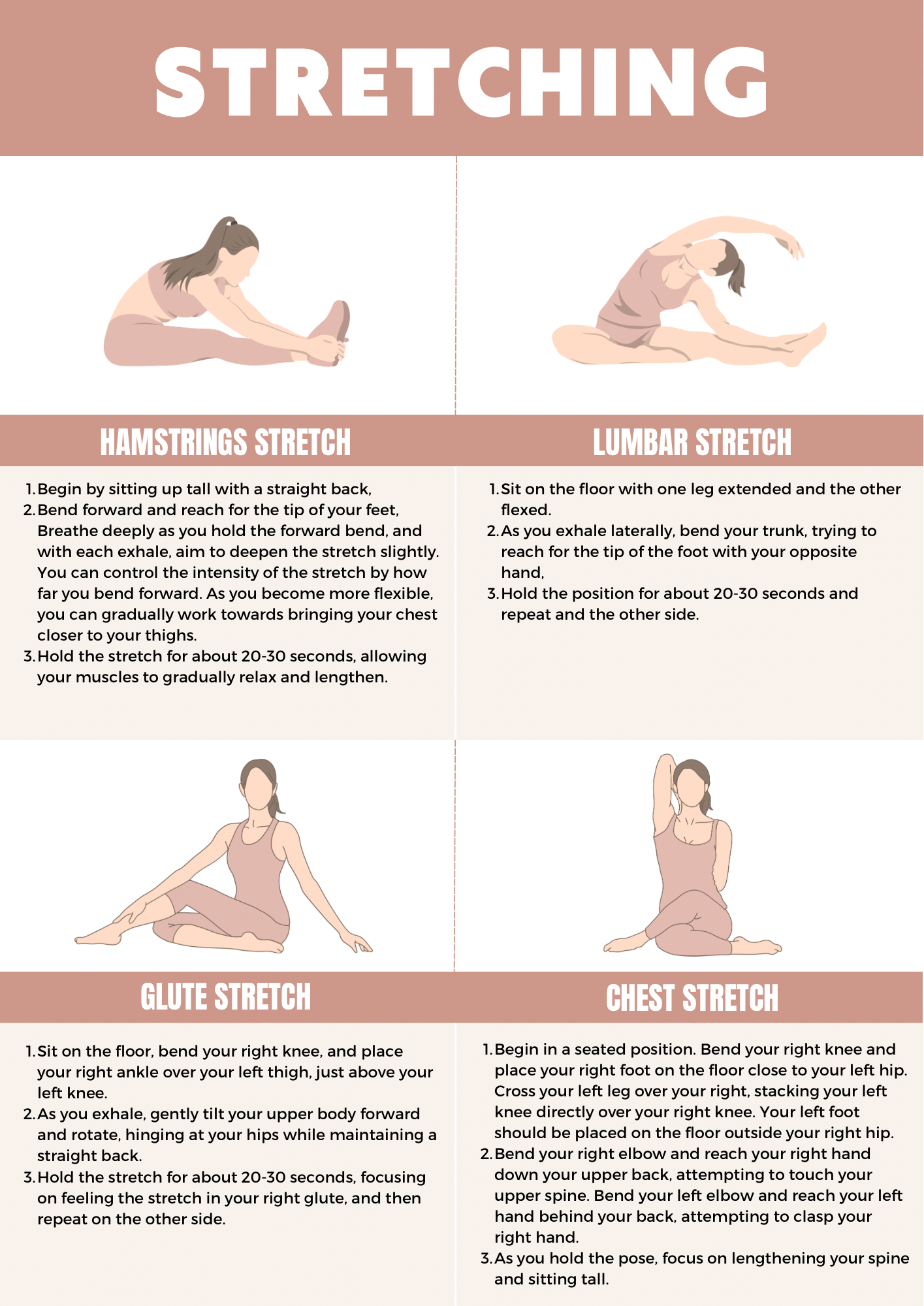 Stretching and foam rolling help to increase out flexibility and range of motion  it also helps increase blood flood, decrease soreness post workout, and improves posture.